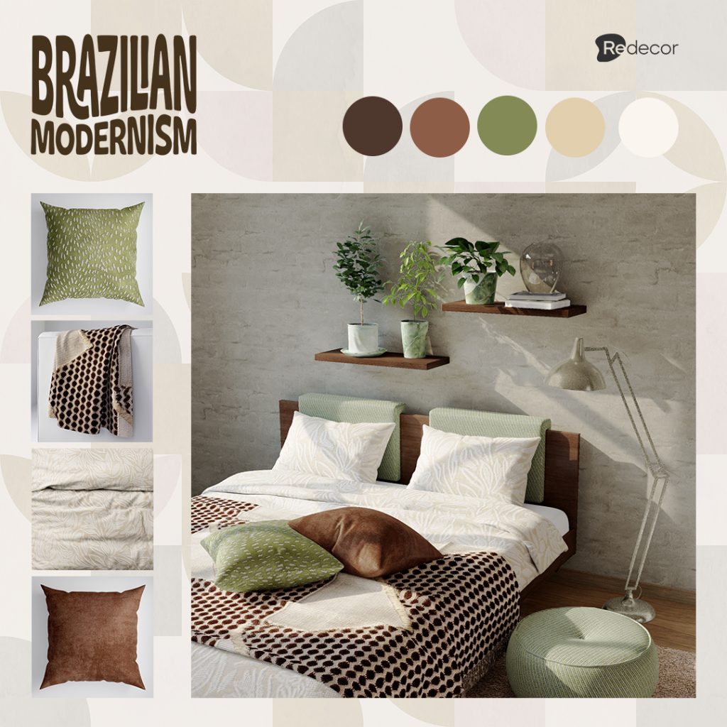 Skip bright primaries. Instead, build your palette around warm wood tones, creams and sandy neutrals, deep greens, and terracotta or muted clay shades. These colors echo Brazil’s landscape, from sun-warmed earth to lush tropical foliage. A grounded palette allows sculptural furniture and architectural forms to take center stage without fighting for attention.